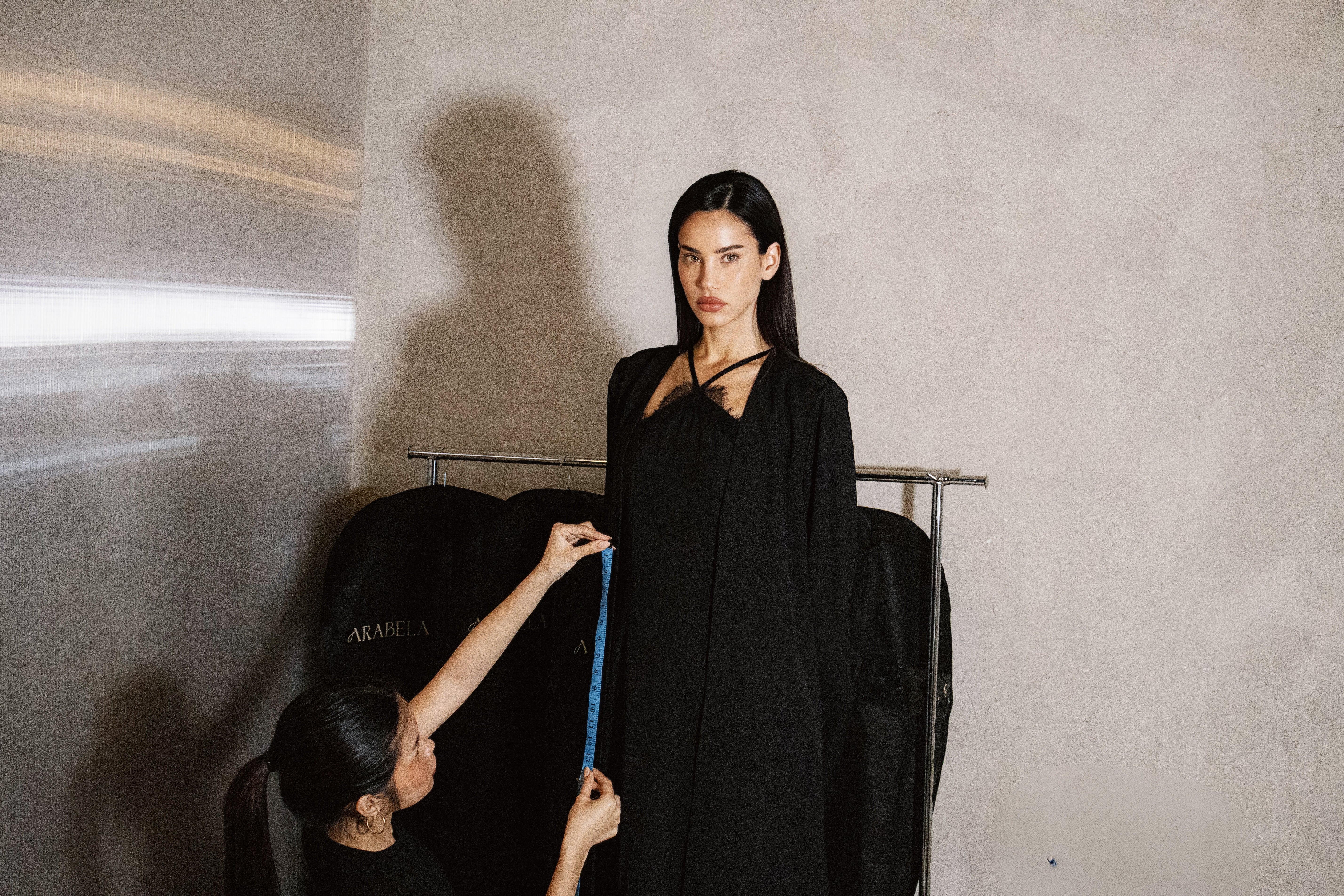 Arabela is born from an encounter between light and contrast, within a mineral world that sculpts lines and revealssilhouettes. A quiet elegance that travels, transcends borders, and reinvents itself through movement. Each creation is conceived as a signature. Long, fluid lines, controlled volumes, cuts that follow the body with precision. Fabrics are selected for their nobility anddrape, in a constant pursuit of balance between softness and strength.À through its pieces, Arabela reinterprets an iconic long silhouette, reworking its codes, lines, and proportions to offer acontemporary, refined, couture vision. An approach that transforms an emblematic piece into a modern wardrobe designed to endure. Arabela speaks to the women of today those who move forward with confidence and express their presence with quietstrength. A contemporary femininity, carried by grace, mastery, and timelessness